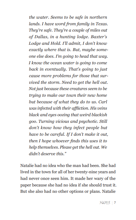 “Souille is a riveting novella that artfully blends elements of horror and science fiction to craft a high-stakes adventure that will keep readers on the edge of their seats. When Natalie’s life is thrown into chaos after a terrible hurricane leaves her hometown in ruins, she’s thrust into a deadly face-off against strange and malicious entities in her desperate struggle for survival.”